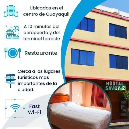 يوفّر مكان الإقامة موقعاً في جواياكيل على بعد نحو 25 دقائق سيرًا على الأقدام من متحف بريسلي نورتون. ويمكن الوصول إلى Noria "La Perla" في غضون 9 دقائق سيرًا على الأقدام. يقع هذا الفندق مقابل ماليكون 2000، قبالة Saint Francis Church. سيجد الضيوف محطة حافلات Parada Banco Central بجوار Hostal Savoy 2، في غضون 5 دقائق مشياً على الأقدام.